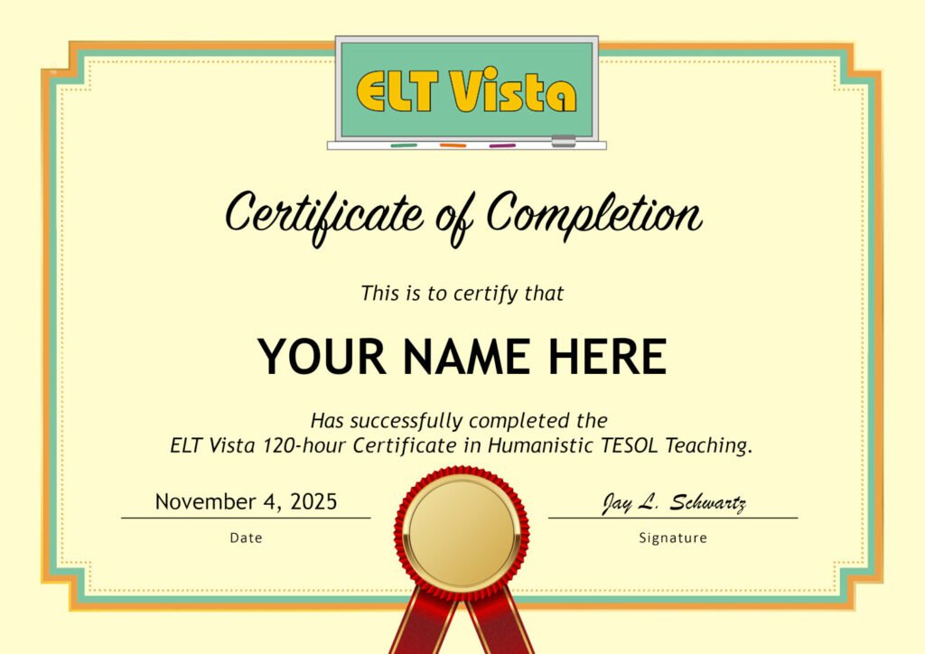 To mark the release of our new ELT Vista Certificate in Humanistic TESOL Teaching, we are offering a limited holiday-season enrollment rate of $99 (regular price: $119). This introductory price is available for a short time as we open the doors to our first cohort of learners. If you’ve been considering joining us, now is an excellent moment to begin your journey in humanistic TESOL teaching and professional development.